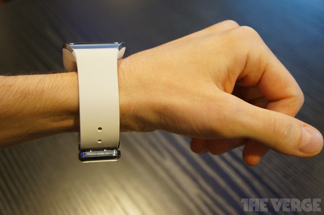 Thoạt nhìn, Galaxy Gear vẫn chưa thoát khỏi sự thô nhẹ của một thiết bị công nghệ. Khi mang trên tay, trông Gear khá to bản và dễ gây sự chú ý, chứ không như một chiếc đồng hồ thông thường.